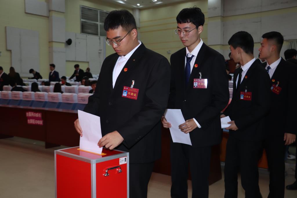 11月25日,我校第二次學生代表大會在圖書行政樓西報告廳舉行。黨委副書記郭培謙,各有關單位、部門負責人,各書院團總支書記出席了大會,169名學生代表參加大會。
