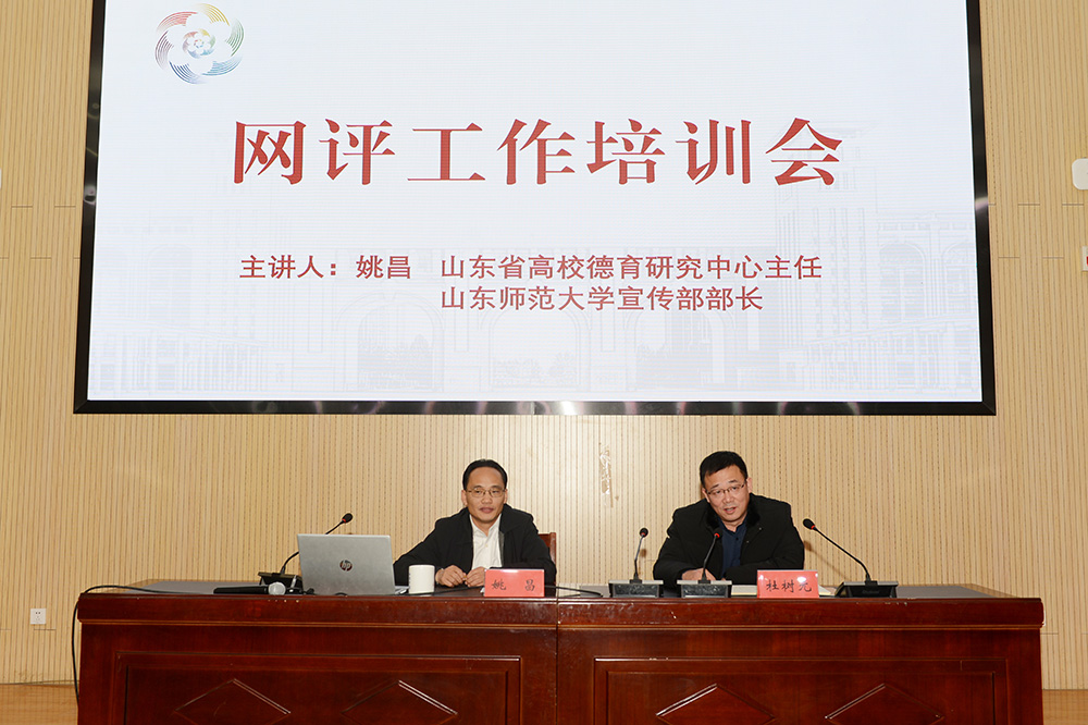 為進一步鞏固壯大網上主流輿論,加大網上正面宣傳引導,12月29日,我校在圖書行政樓東報告廳舉辦了網評工作培訓會,邀請到山東高校德育研究中心主任、山東師范大學宣傳部部長姚昌作輔導報告。培訓會由黨委宣傳部部長杜樹元主持。