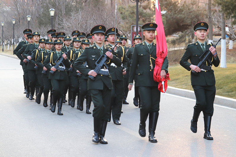 7點30分,國旗護衛隊目光如炬、步調一致,護送國旗入場。伴隨著激昂雄壯的《義勇軍進行曲》,旗手振臂一揮,鮮艷的五星紅旗在全體師生的莊嚴注目中冉冉升起。師生齊聲高唱國歌,傳遞著自己對祖國的熱愛和崇高敬意。