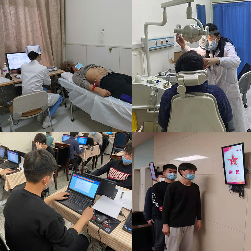 應征學生集中進站前,逐一檢測體溫、全程佩戴口罩,分組分批次進行體格檢查。春季征兵體檢主要包括五官科、口腔科、血壓、內科、外科、心理檢測和HIV檢測(艾滋病)等項目的檢查。體檢過程中,同學們講文明、守秩序、有紀律,耐心地逐項進行檢查。