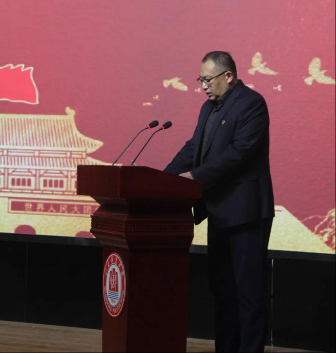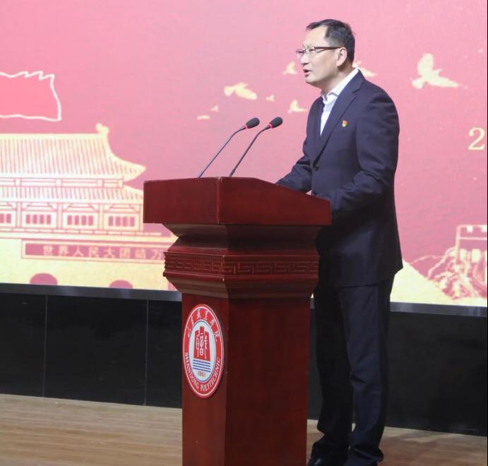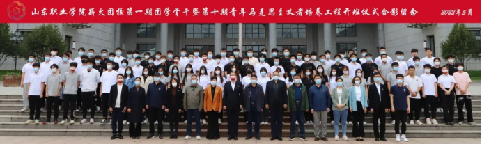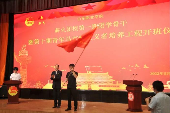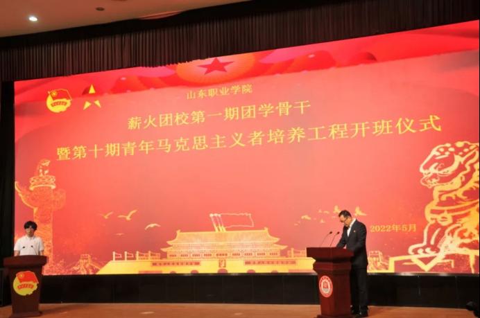 學生工作處處長王輝宣讀《關于組建山東職業學院薪火團校第一期團學骨干暨第十期青年馬克思主義者培養工程培訓班臨時團支部的決定》。
