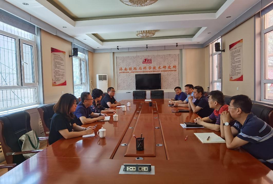 6月7日上午,副院長祝瑞花率隊到中國鐵路濟南局集團有限公司科學技術研究所(簡稱濟南局科研所)交流院所合作事宜。濟南局科研所所長孟凡剛接待祝瑞花一行。