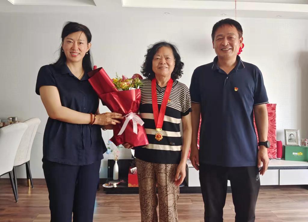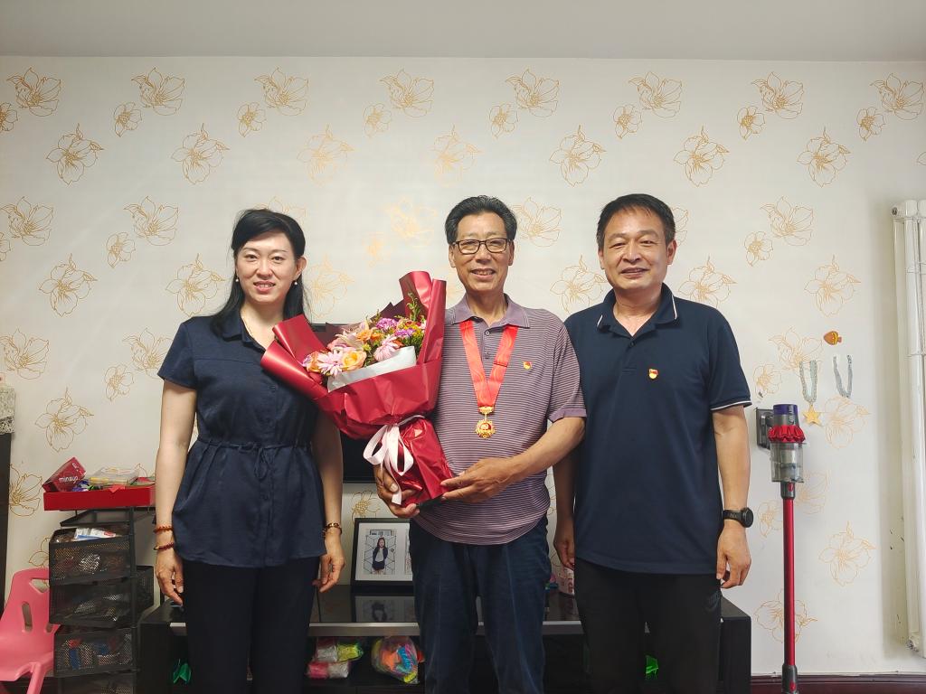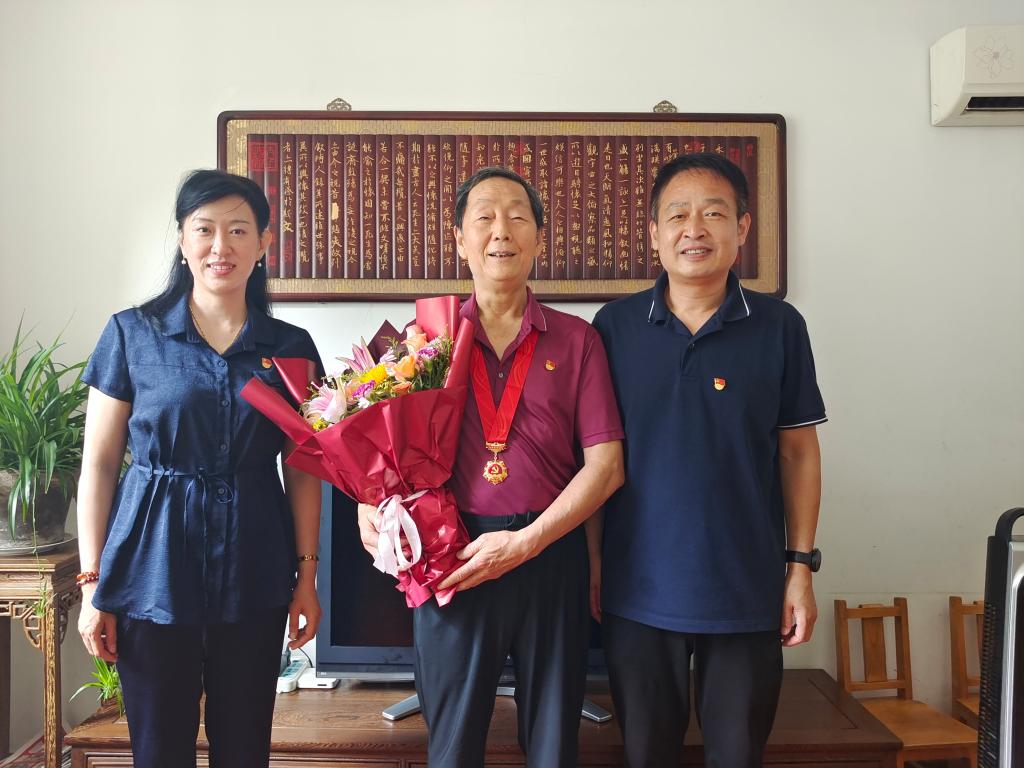 6月23日上午,我校開展“光榮在黨50年”紀念章頒發暨走訪慰問工作。組織統戰部部長劉紅、離退休工作處處長徐向嶺、組織統戰部副部長鈕曉悅上門走訪慰問,將“光榮在黨50年”紀念章和鮮花送到老黨員手中,老黨員們充分感受這份榮光。