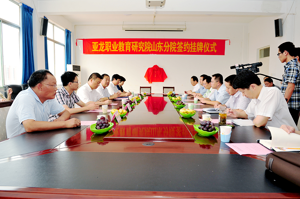 8月10日,中國亞龍科技集團與山東職業學院校企合作簽約暨亞龍職業教育研究院山東分院簽約掛牌儀式在山東職業學院舉行。亞龍集團董事長陳繼權先生、亞龍集團山東辦事處經理陳闖先生、山東職業學院院長鄧洪基、副院長祝瑞花、紀委書記祝介安等出席簽約儀式。簽約掛牌儀式由學院黨委副書記、常務副院長馬文卿主持。學院各系部和相關處室的負責同志也參加了此次簽約活動。