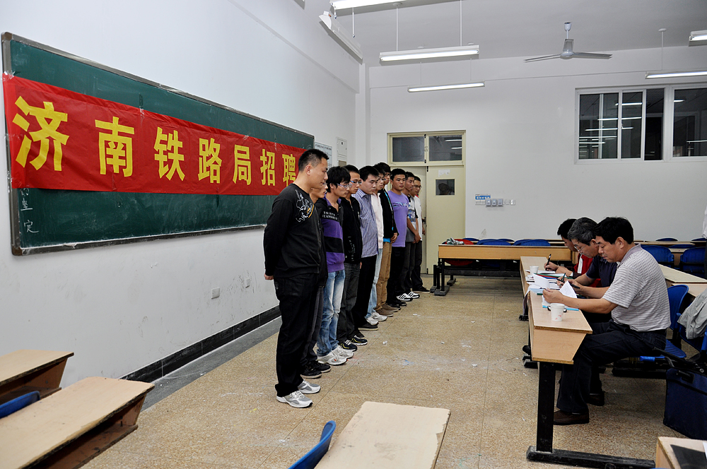 新學期伊始山東職業學院就迎來了南昌鐵路局、廣鐵集團和濟南鐵路局2012年招聘會。招聘會上,學院招生就業指導中心主任張少飛向相關專業畢業生做了詳細的招聘事宜和要求的解說。南昌鐵路局人事處處長、人才交流中心主任方東平,廣鐵集團廣文汕鐵路公司人事部部長王科瓊,濟南鐵路局人才交流中心主任胡金瑞親臨招聘會現場,為前來參加招聘會的畢業生詳細介紹企業概況。各相關系部就業指導辦公室主任和輔導員親臨招聘會現場,為學生提供應對面試的指導幫助。