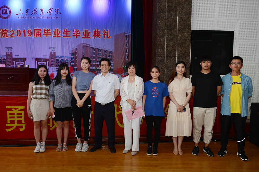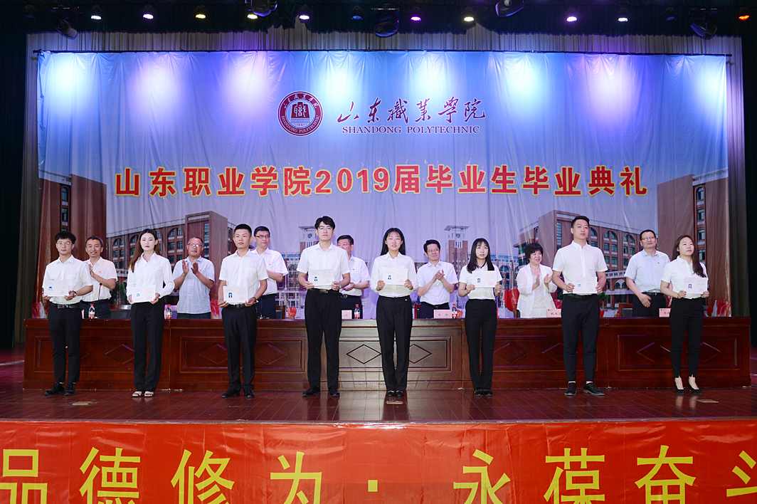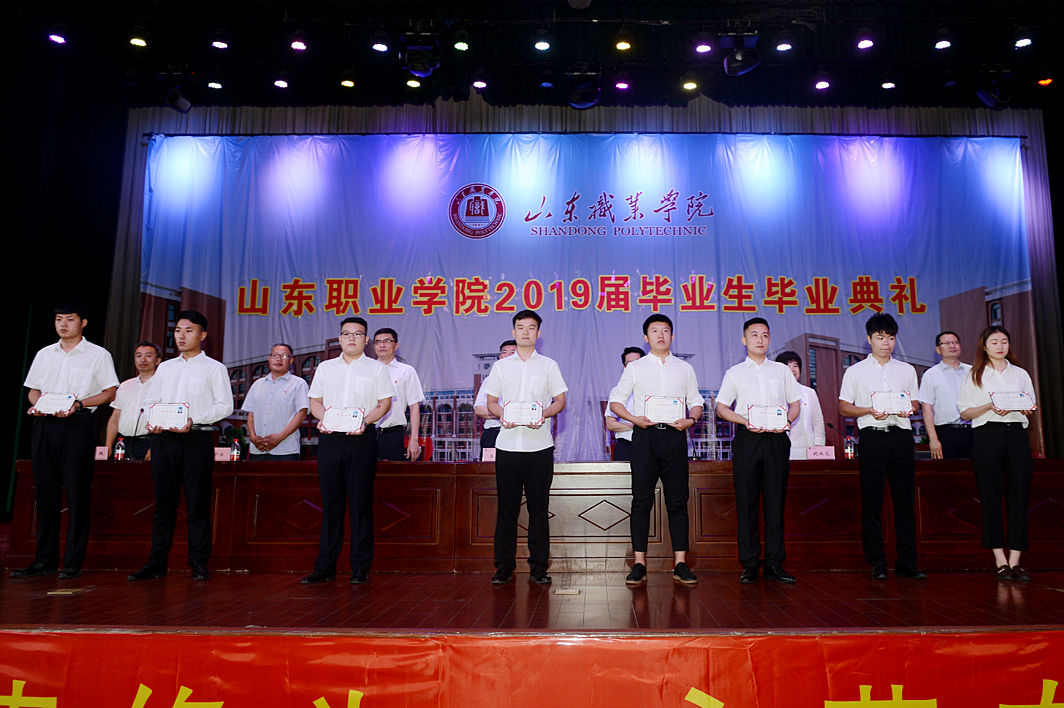 畢業典禮上,副院長郭鵬宣讀了《山東職業學院關于準予2019屆畢業生畢業的決定》,黨委副書記徐冬宣讀了《山東職業學院關于表彰2019屆優秀畢業生的決定》,學院領導向畢業生代表頒發了畢業證書,向優秀畢業生代表頒發了榮譽證書,向外國留學生頒發了學習經歷證書。