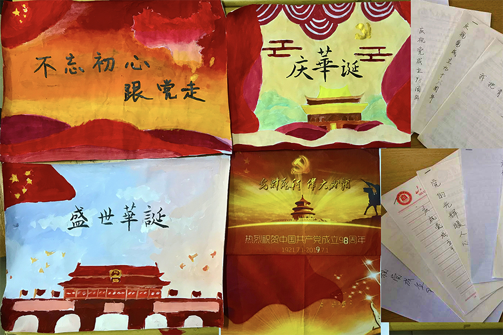 紅色華誕,光輝歷程。同學們還積極開展了征文、繪畫、圖片展等多種活動,生動形象的筆墨書畫躍然紙上,將大家對黨的敬重與愛戴抒發出來,字里行間體現著新時代青年人對黨的無限敬愛之情。