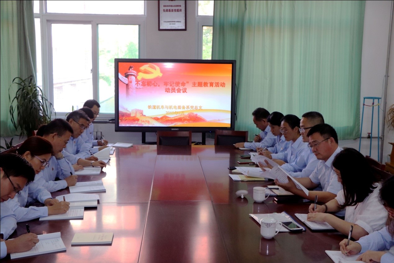 9月26日,鐵道機車與機電裝備系黨總支系召開“不忘初心、牢記使命”主題教育動員部署會,學院黨委宣傳統戰部部長杜樹元指導會議并作講話,系黨總支書記王培林作動員部署,全體黨員參加會議。