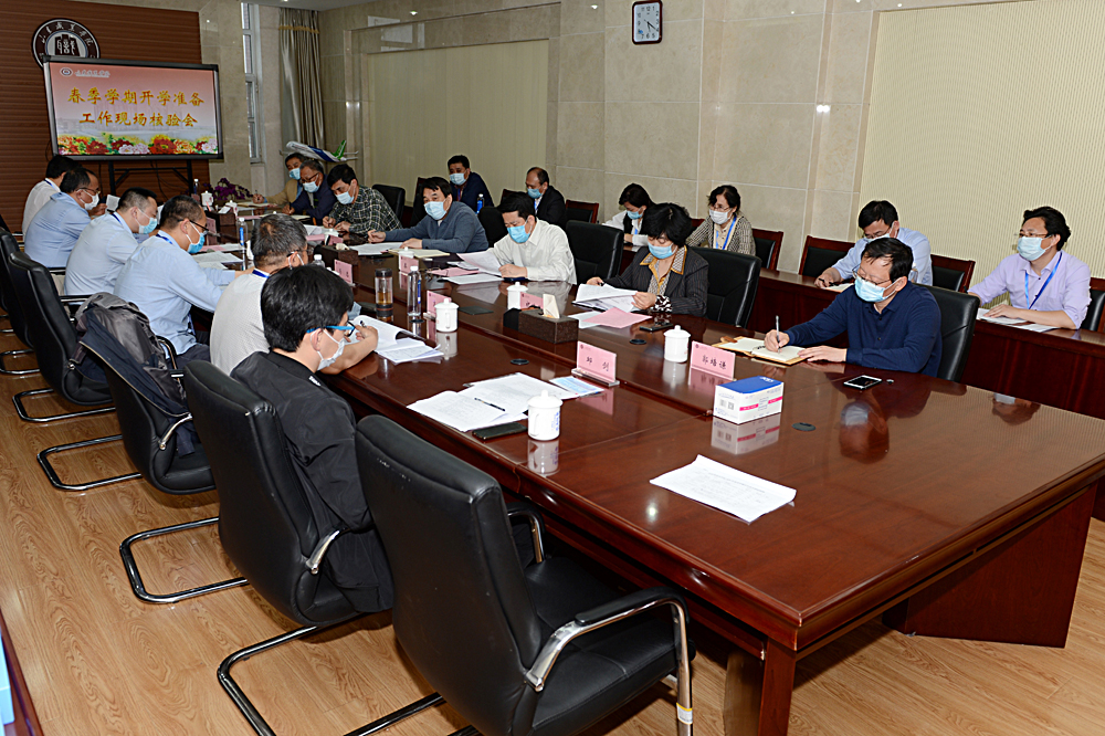 2020年5月7日,濟南市駐濟高校2020年春季學期開學條件核驗專家組第八組組長馬忠一行六人到我院核驗開學準備工作。學院黨委領導班子全體成員,學院疫情處置專項工作組成員全程陪同核驗。