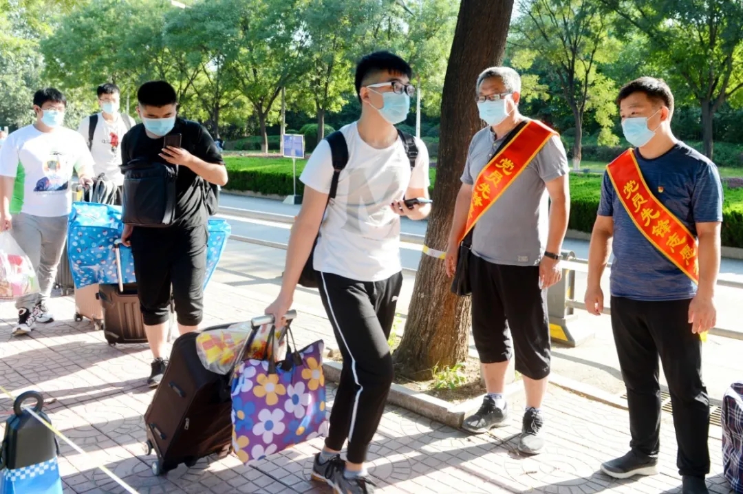 學生返校的三天,從校內到校外,從清晨到黃昏,黨員志愿者們全程堅守在服務學生入校的先鋒崗位上,幫助維持現場秩序、測量體溫、檢驗健康綠碼、引導學生規范入校。他們熱情洋溢,耐心解答學生的疑慮,恪盡職守,黨徽在志愿者中熠熠閃耀,黨旗在志愿服務一線高高飄揚。