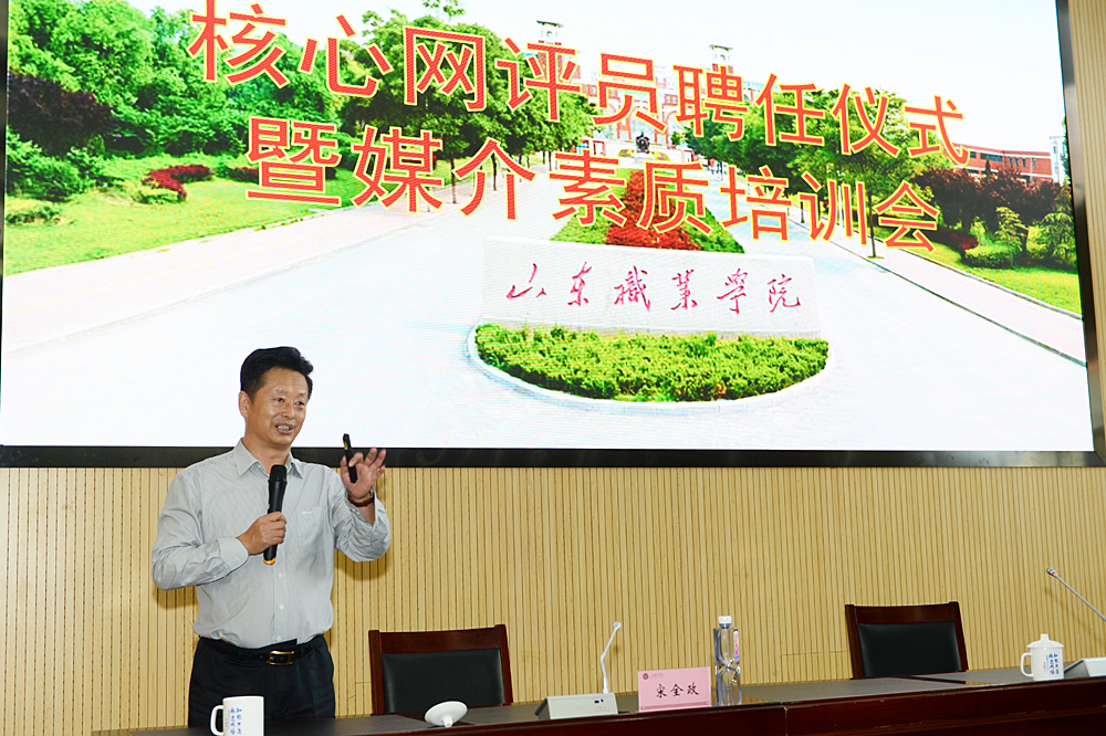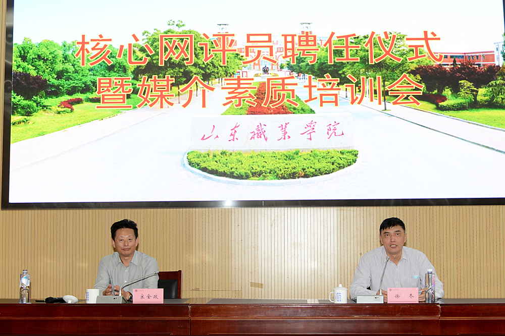 9月28日,我校在圖書行政樓東報告廳舉行核心網評員聘任儀式暨媒介素養培訓會。山東省教育廳(省委教育工委)辦公室二級調研員、廳新聞中心主任,研究員宋全政應邀為學校核心網評員頒發聘書并做報告。黨委副書記徐冬、紀委書記祝介安出席會議。報告會由黨委副書記徐冬主持。