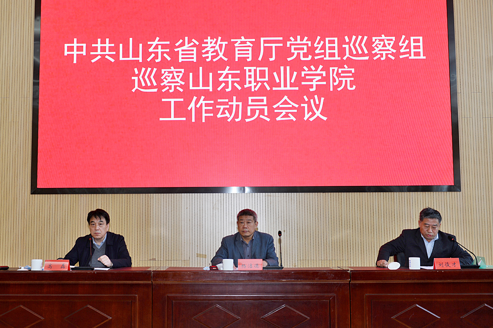 10月22日,中共山東省教育廳黨組巡察組對山東職業學院開展巡察工作動員會召開。省委教育工委委員、廳黨組成員、駐廳紀檢監察組組長楊潔德,廳黨組巡察組組長、二級巡視員劉俊才出席會議并講話。山東職業學院黨委書記高磊主持會議并作表態發言。