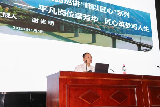 謝光明以“平凡崗位譜芳華,匠心筑夢寫人生”為題,用自己的人生經歷告訴同學們,“做一件事情就要做到完美,做到極致”,要成為真正的“大國工匠”,就要愛崗敬業、精益求精、執著專注、不斷創新;要勇于實踐,知道不是力量,做到才是力量;要有團隊精神,一個人的力量是微不足道的,團隊的力量才是戰勝困難的法寶;要樹立自己的理想,現在,青春是用來奮斗的,將來,青春是用來回憶的,用高遠志向收獲自己的成果。
