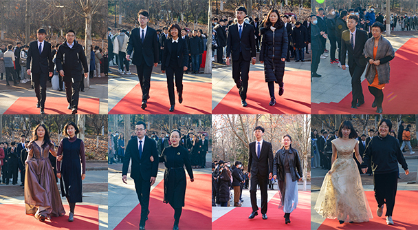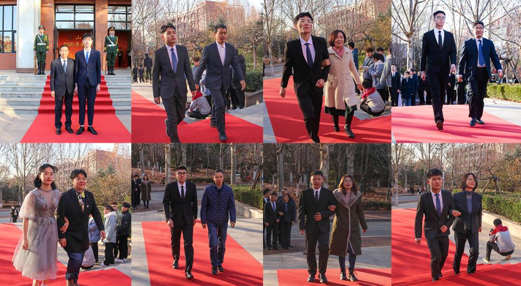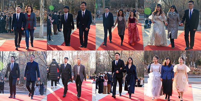 師生風采展環節,由獲得國家獎學金、省政府獎學金、泉城獎學金的同學與受邀老師一同走過紅毯,在勵志墻鄭重簽名并合影留念,共同記錄這一莊重而又難忘的時刻。