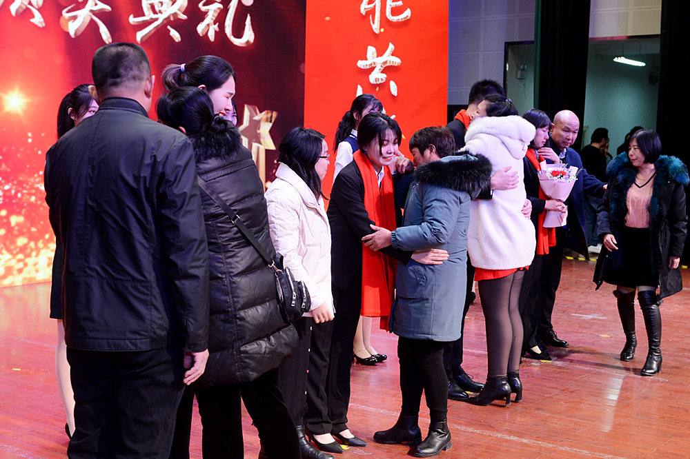 為了彰顯我校“家校協同育人”的理念,今年學校秘密邀請了4名獲獎學生的家長到頒獎典禮現場為孩子送上象征“奮斗、青春”的紅圍巾,4名獲獎學生在驚喜、淚目中與家人共同分享自己通過努力奮斗贏得的榮譽和祝福。