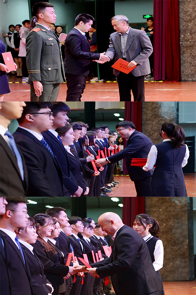 中國鐵路濟南局集團有限公司團委書記胡述沛、濟南軌道交通集團運營公司人力資源部副部長劉潤澤,院長秦河、黨委副書記徐冬、紀委書記祝介安、全國“五一”勞動獎章獲得者李增足教授、全國模范教師艾菊蘭等領導和嘉賓向獲獎同學頒發榮譽證書。