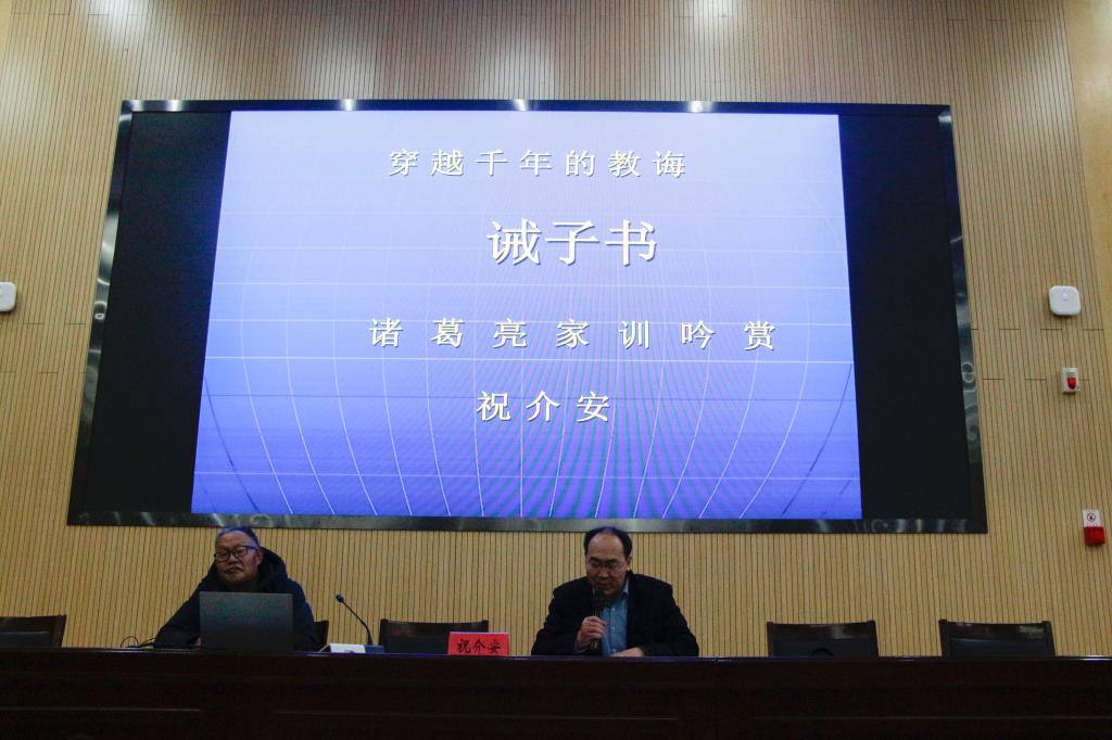 祝介安用“犬肖主”和“方西瓜”的故事,探討家風教育對我們產生的深遠影響,其后引用我校諸多優秀畢業生事例,提出“校園美、特色明、勇爭先、慣領先”的“山職畫像”。隨后在祝書記的領讀下,眾人齊聲朗讀《誡子書》原文。興從中來,祝介安書記起身進行了一段現場吟誦,悠轉頓挫的誦聲傳達了對入黨積極分子的殷殷期許,現場氣氛一度熱烈。