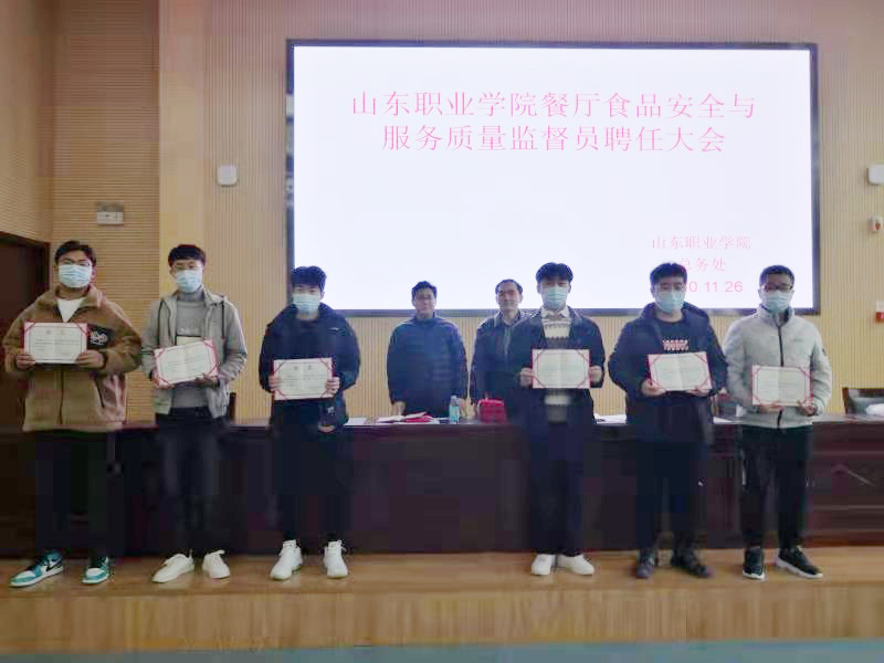 為進一步加強學校餐廳食品安全衛生管理,讓學生更快捷地參與餐廳服務質量的監督與信息反饋。11月26日,學校首批餐廳食品安全與服務質量監督員聘任儀式在圖書行政樓東報告廳隆重舉行,總務處為39位大學生頒發了監督員證書。