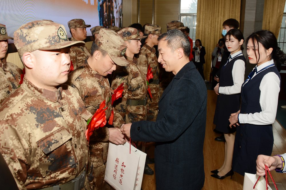 退伍學生靳啟水代表退伍老兵分享了自己從軍的收獲,對新入伍學生提出了幾點建議。新入伍學生賈東千代表20名新入伍學生發言,感謝父母的養育、學校的培養、老師的教育,表達了建功軍營、獻身國防的堅定決心。
