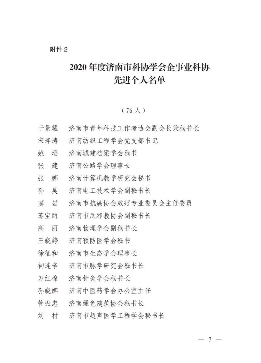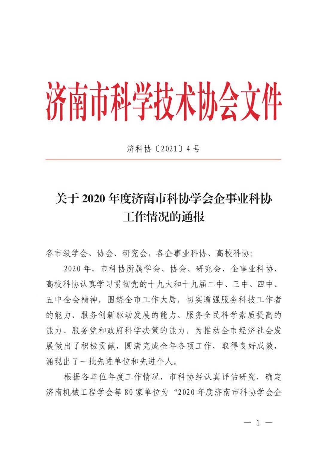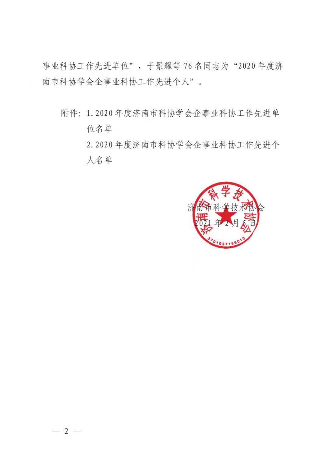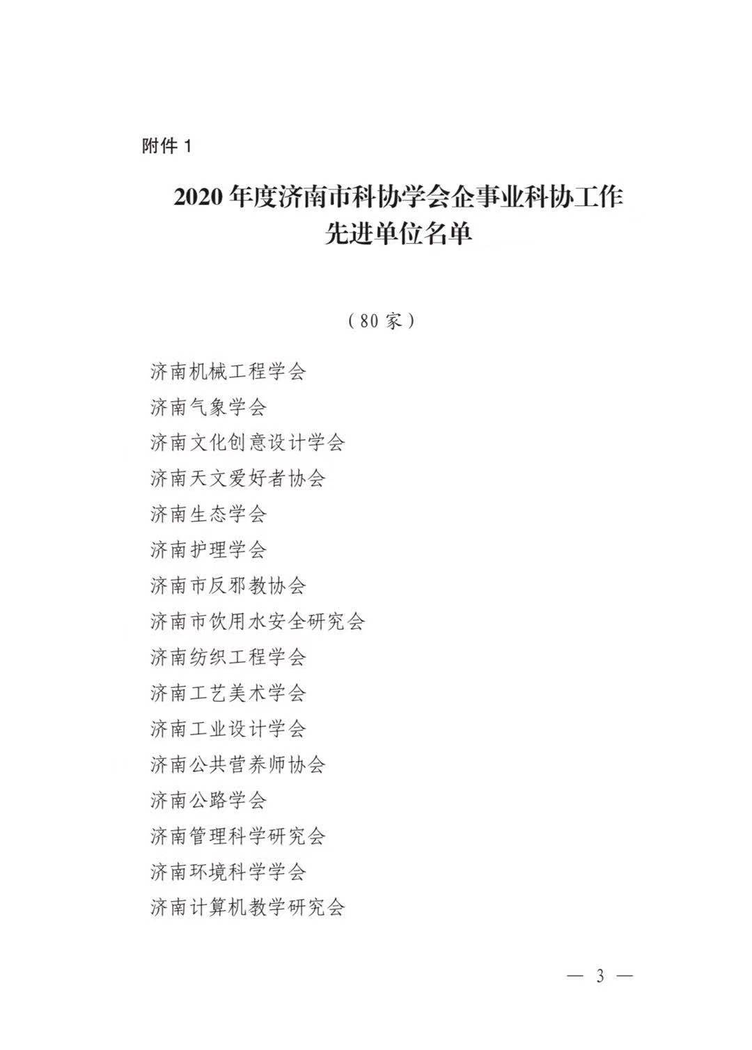 3月26日,濟南市科協對2020年度學會企事業科協工作情況進行了通報,在評估研究各單位年度工作情況的基礎上,評定80家單位和76名個人為2020年先進單位和先進個人。我校科協被評為“2020年度濟南市科協學會企事業科協工作先進單位”,我校科學技術與社會服務處副處長李白露被評為“2020年度濟南市科協學會企事業科協工作先進個人”。
