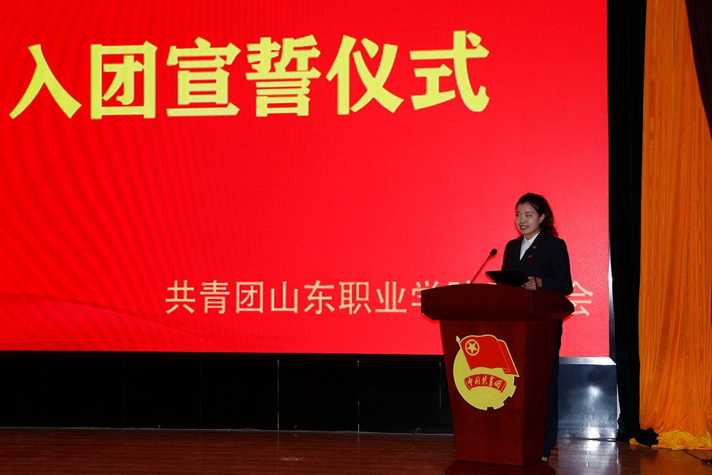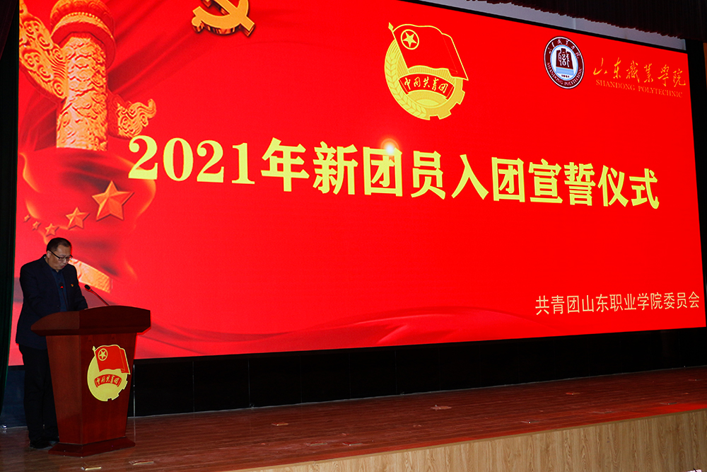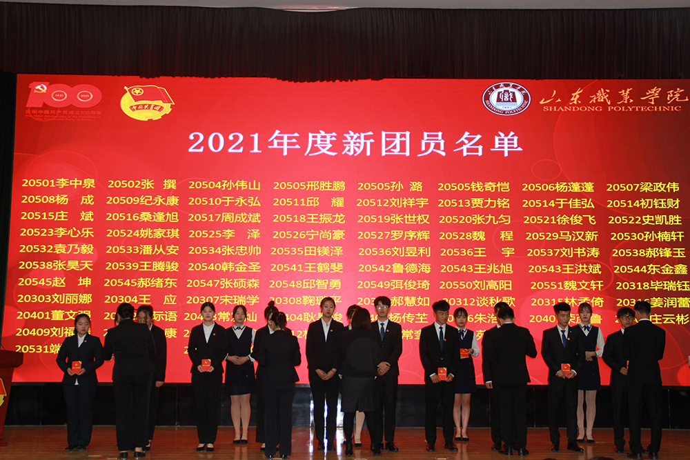 在入團儀式環節,組織部部長王輝宣讀了《關于發展2021年新團員的決定》。本次獲批準入團的新團員共有80名。他們在眾多優秀團干、團員的見證下,鄭重地佩戴好團徽,面向團旗莊嚴宣誓。