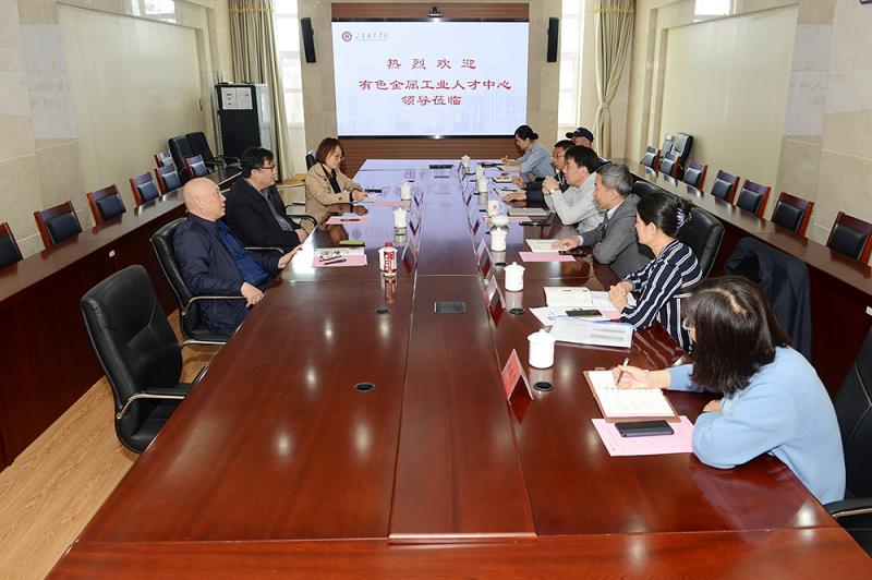 5月11日上午,有色金屬工業人才中心副主任宋凱一行3人來校洽談海外職業技術學院建設工作,黨委書記高磊出席會見。
