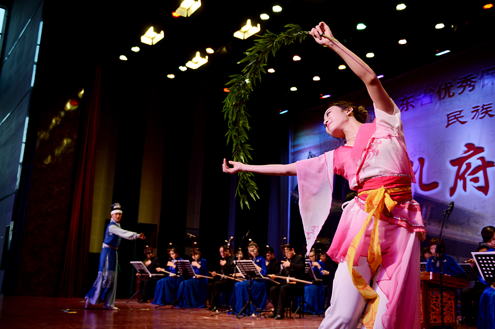 《孔府樂舞》是第二屆山東省優秀保留劇目工程扶持項目,由山東省歌舞劇院民族樂團創作。整部劇以頌揚孔子思想為主脈線,從《大哉孔子》的恢宏、莊嚴開始,劇中的鐘樂篇、禮樂篇、鼓樂篇的音樂創作取材《詩經》、杏壇講學、《幽蘭操》、闕里古韻等與孔子有關的典籍、事跡,在多角度展示孔子思想精髓的同時,展現儒家文化魅力,歌頌儒家文化對中國歷史的巨大影響和重要地位。
