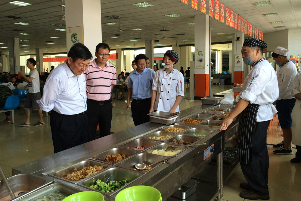 王榮昌對每個窗口的飯菜花色品種、標價牌和食品衛生安全情況進行了仔細考察和詢問。強調食品安全重于泰山,一刻不能放松,食堂工作人員要嚴格執行食品生產管理制度,認真落實學院食品衛生安全管理的各項要求,務必確保食品衛生安全。期間,王書記還與學生親切交談,詢問飯菜質量如何、價格是否合理,并叮囑同學們要學會照顧自己,學會生活,好好學習,報答父母和社會。