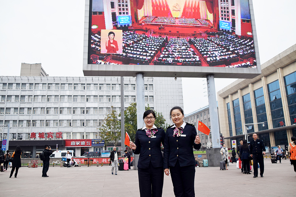 10月18日,中國共產黨第十九次全國代表大會在北京開幕。濟南火車站在廣場大屏直播十九大開幕盛況,電視直播吸引了近千名旅客駐足觀看。鐵道供電與電氣工程系紅藍青青年志愿者協會志愿者在現場與游客及附近的居民共同觀看了十九大開幕盛況。