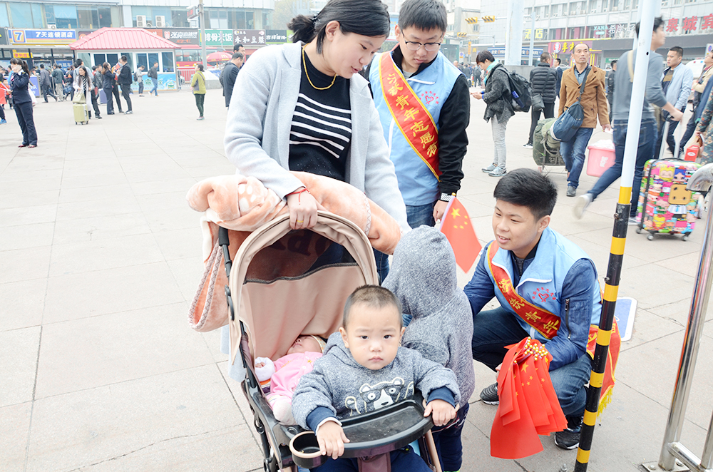 青年志愿者張延澤在接受采訪時表示,作為一名團員青年,自己深深體會到志愿服務中的快樂和成長,觀看黨的十九大直播盛況,習近平總書記的講話聽在耳中,記在心里。“來濟南火車站做過多次志愿服務,這次特別不一樣,能與游客一起觀看黨的十九大直播盛況,特別幸運,自己更加真切地感受到中國共產黨為了國家和人民的利益前仆后繼、艱苦奮斗的偉大歷程,作為一名中國人,無比驕傲與自豪。”其他志愿者也紛紛感言“和游客一起揮舞國旗、高唱國歌,心中的民族自豪感與獲得感油然而生,請祖國放心,我們一定會成為優秀的共產主義青年,為黨和祖國奉獻自己的力量。”