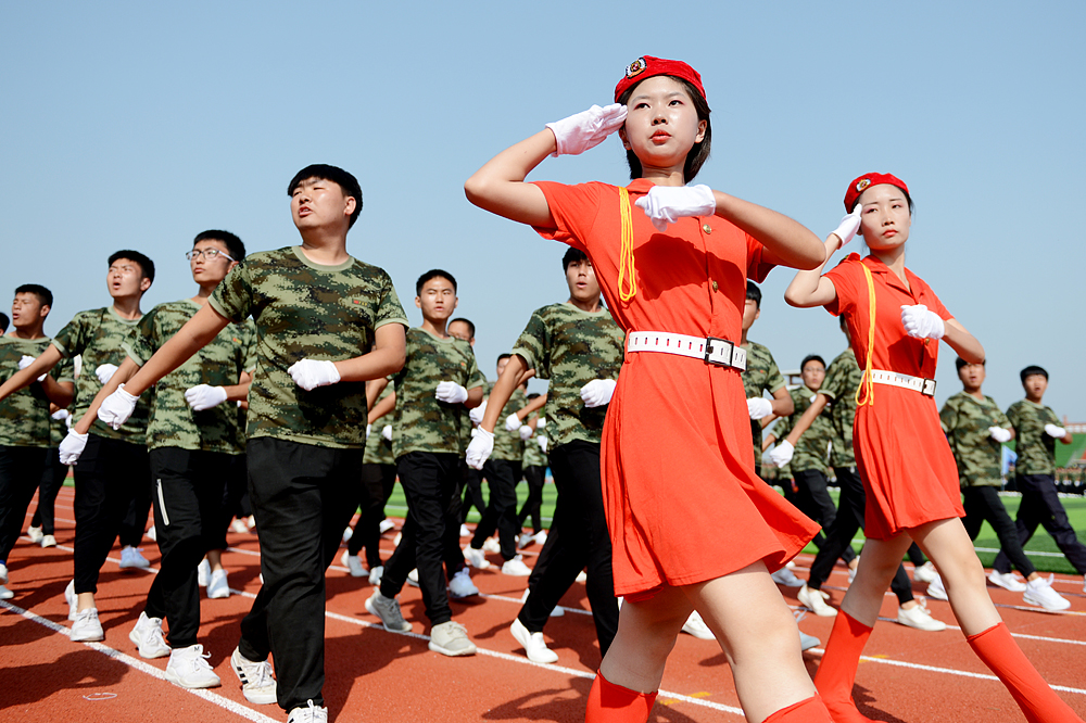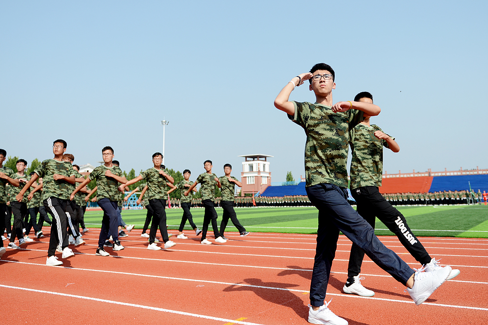 分列式上,受閱方陣邁著整齊的步伐依次經過觀禮臺前,同學們口號嘹亮,動作標準,展示了艱苦訓練的成果。他們剛健有力的步伐、昂揚向上的軍容軍貌贏得了在場領導和師生的熱烈掌聲。軍訓課目匯報中,同學們進行了隊列操練、軍體拳表演、手語操表演等,為軍訓匯報表演增添了無限精彩,向學院領導、教官和老師們交出了一份滿意的答卷。