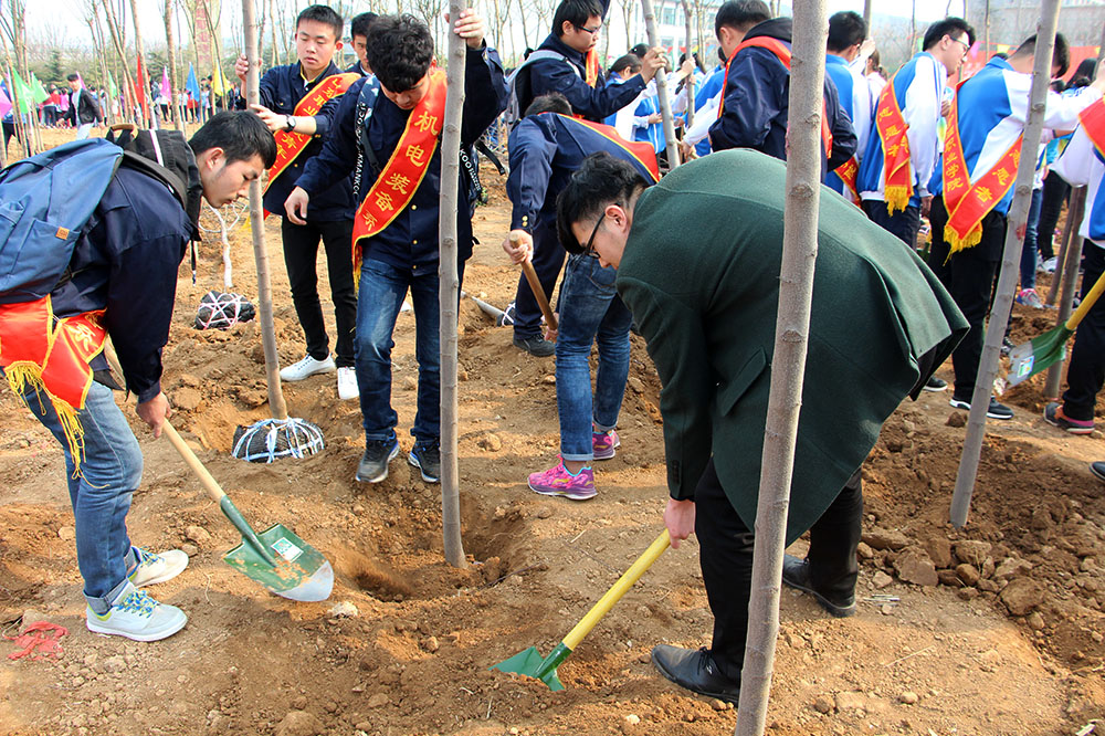 陽春三月,萬木爭春。在“植樹節”到來之際,鐵道機車與機電裝備系開展了為期兩天的義務植樹活動。植樹現場,志愿者們齊心合力,配合默契,繁忙有序。他們有的扛苗散苗,有的扶樹填土,有的蓋土澆水,干的熱火朝天。大家揮灑著汗水,享受著勞動帶來的快樂。經過志愿者們兩天的辛勤勞作,一棵棵樹苗“安家落戶”。