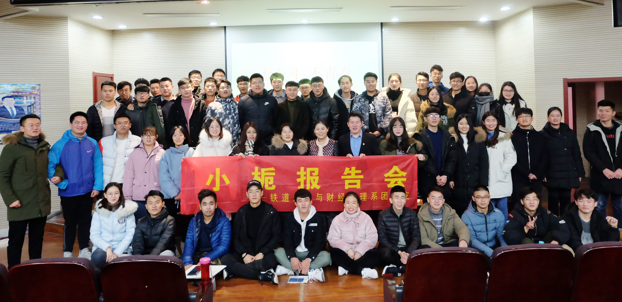 12月10日,鐵道運輸與財經管理系舉辦了第三期小梔報告會。本期報告會主題是“無奮斗,不青春”,邀請到鐵道供電與電氣工程系2016級學生會主席曲志卓講述他奮斗的青春歷程。