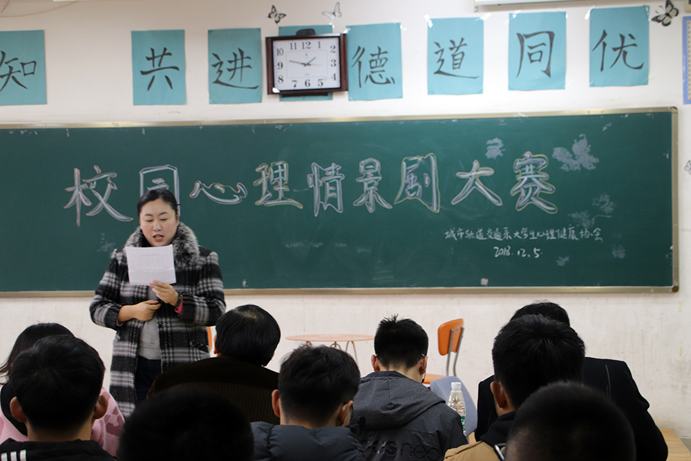 為了進一步普及心理健康知識,提高大學生心理素質水平,12月5日,城市軌道交通系舉辦了校園情景劇大賽,學工辦主任兼團總支書記張娜,輔導員叢樹勝、武文玉、孫梅玲出席本次比賽并擔任評委。