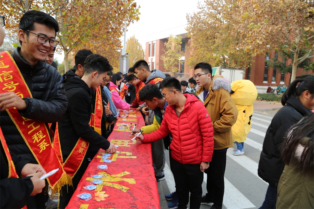 為進一步增加全校同學的節水意識,11月29日,鐵道信號與信息工程系舉辦了節約用水簽名活動。 同學們在青年志愿者的引導下,紛紛在橫幅上簽下自己的姓名。