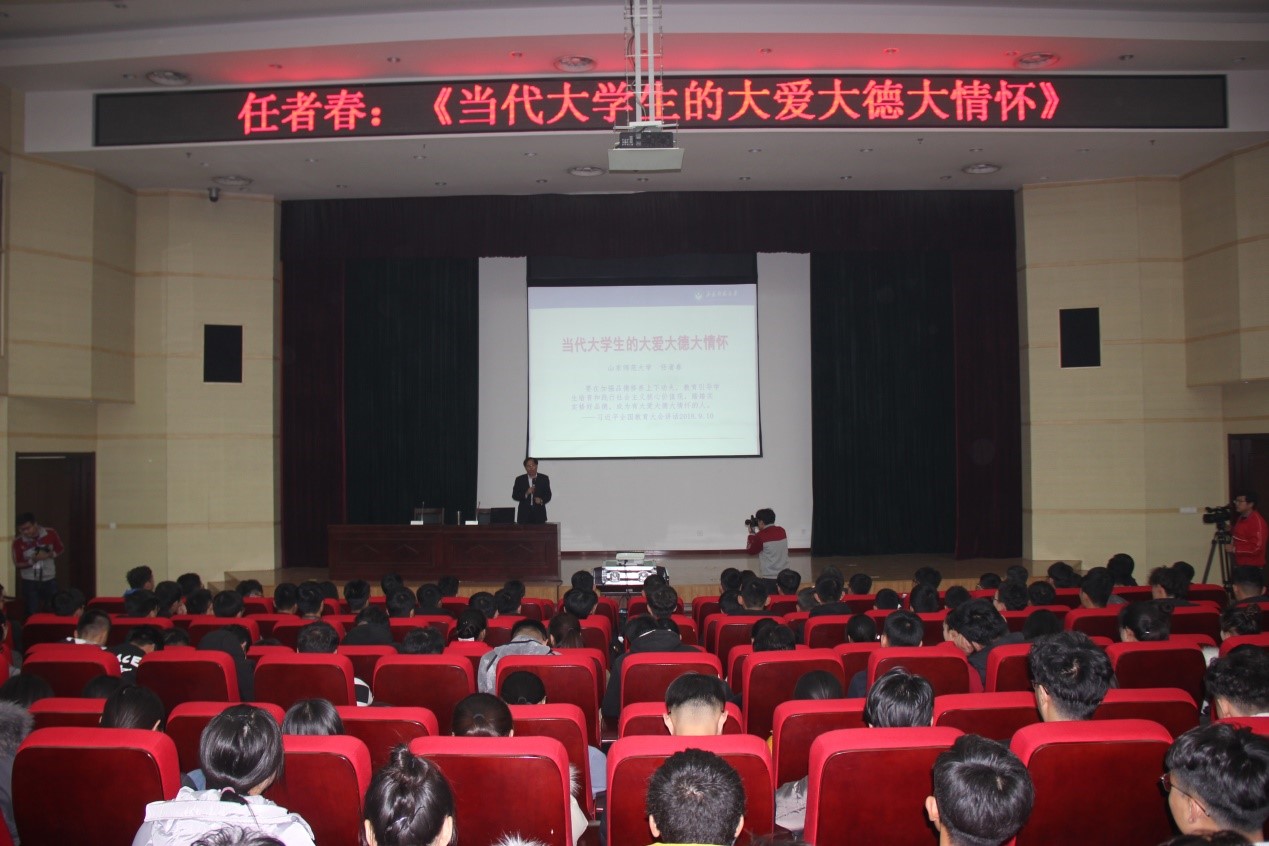 任者春教授從大知、大情、大意志、大行四個方面分別展開論述。大知就是無數小知的有機聯系,形成的整體、系統的認知,教導同學們要在知識的聯系上下功夫。大情是人之為人的規定,是世間回腸蕩氣的美麗。有大情,才會有大德,大犧牲,大奉獻。不管是偉大的事業,還是平凡的人生都需要大意志,告誡同學不是迷茫,是意志不夠堅強。最后任老師督促同學們要積極的行動起來,做一個有行動力的人。