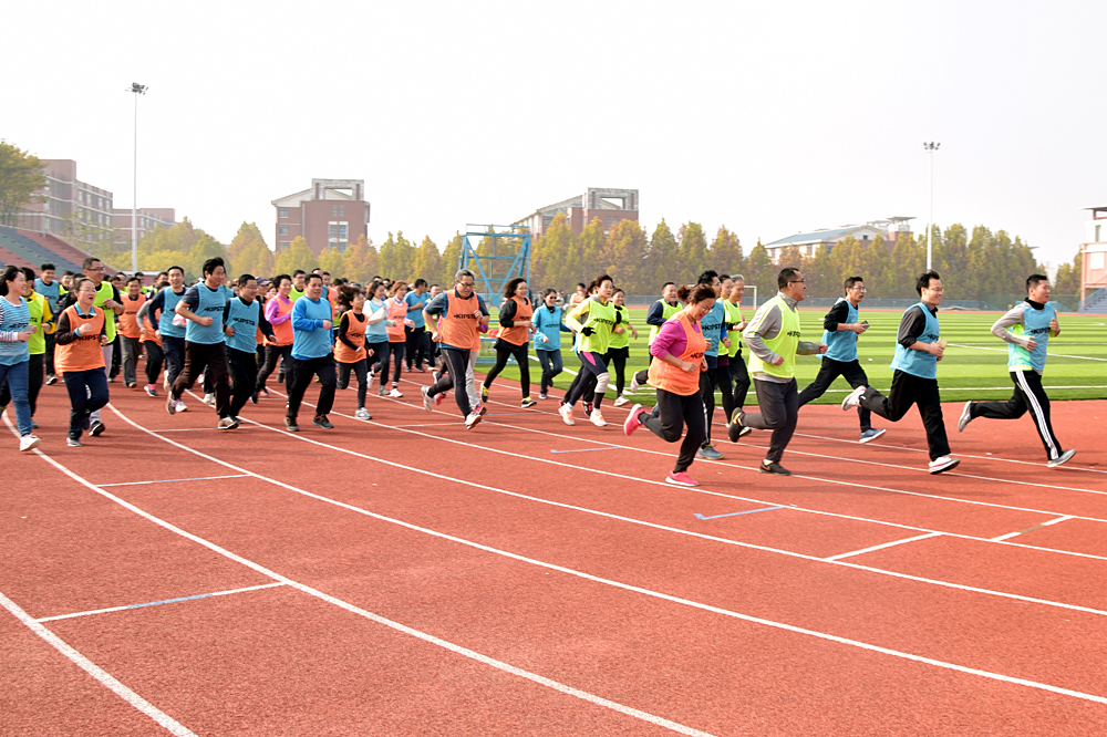 惠風和暢,碧空如洗。11月13日,全院300多名教職員工身穿亮麗的跑步馬甲,精神抖擻地齊聚校園操場,期待一場健康與活力的運動盛宴。隨著清脆的發令槍響,參賽隊伍浩浩蕩蕩從賽道起點出發,場面蔚為壯觀。接下來,選手們將環繞校園兩圈,整個賽程接近4公里,這是對毅力與體力的極大考驗。