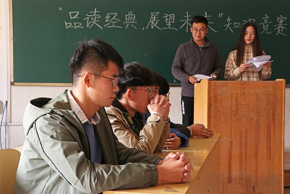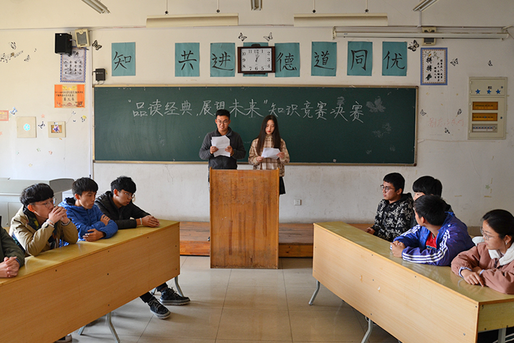 決賽共分為三輪,第一輪博覽群書,由主持人向參賽隊伍提問;第二輪生死時速,由搶答爭先方回答問題;第三輪指點江山,以辯論方式雙方隊伍進行角逐。在第一輪環節中,雙方旗鼓相當,詩詞接龍、歷史人物、古書考證等問題被雙方隊伍一一克服,在經歷了激烈的對決之后,由城市軌道交通運營管理1831班答出詩詞接龍“七月七日長生殿,夜半無人私語時”險勝。第二輪搶答環節,不僅僅是對知識儲備的檢驗,更是對反應速度的檢驗。城市軌道交通運營管理1831班的同學們思維敏捷、反應迅速,在搶答環節中更勝一籌。第三輪辯論賽中,同學們就“經典文學和網絡文學哪個更適合當代發展潮流”問題展開辯論,城市軌道交通運營管理1831班用經典文學是中國優秀傳統文化的濃縮為論點,最終憑借出色的辯論獲勝,奪得桂冠。