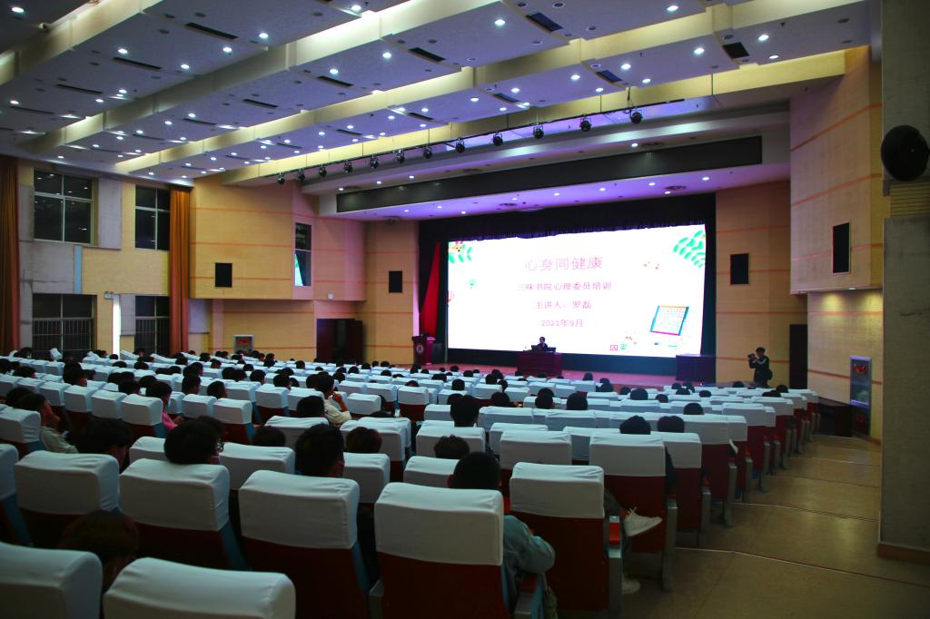 為了提升三味書院心理委員、宿舍心理聯絡員的心理素質、專業技能、溝通能力、工作方法,10月14日,三味書院心理負責老師羅磊在圖書行政樓西報告廳舉辦了“心身同健康”心理主題培訓,各書社心理委員和各宿舍心理聯絡員200余人參加培訓。