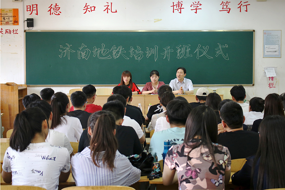 城市軌道交通系作為濟南軌道交通的合作單位,承擔2015級濟南地鐵培訓班為期50天的培訓任務。5月14日,城市軌道交通系舉行濟南地鐵培訓開班儀式。公司綜合管理部吳文靜、客運部趙倩,城市軌道交通系主任王紹軍出席會議。