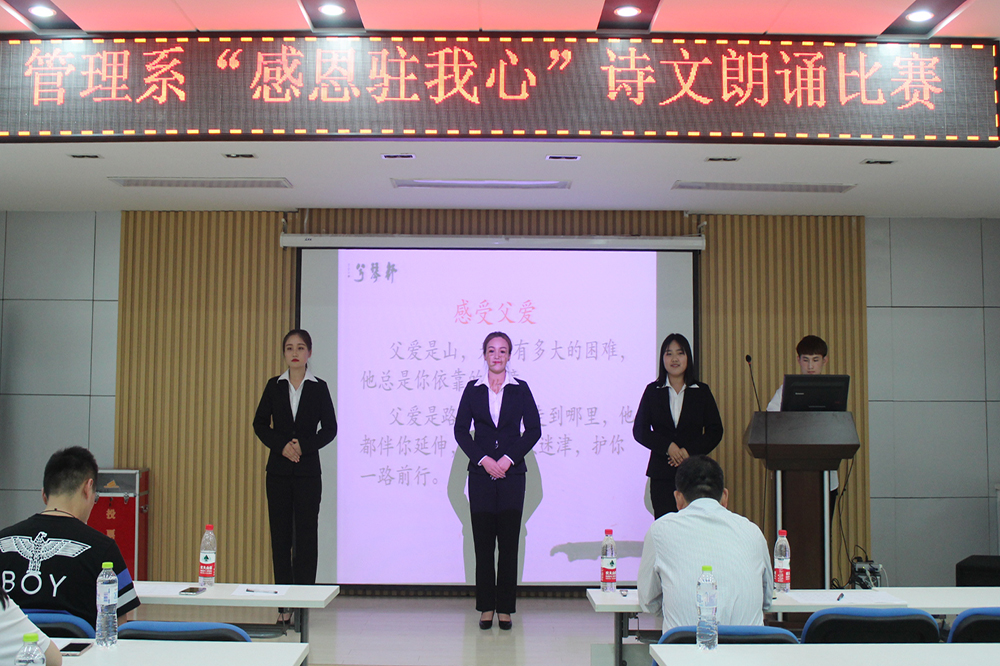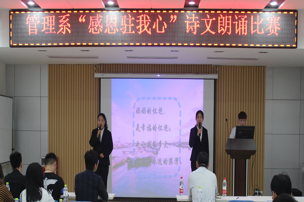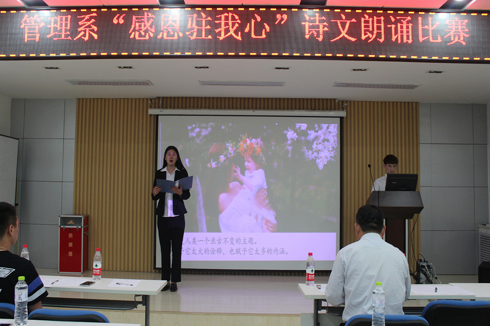 母親節前夕,為弘揚中華民族的傳統美德,讓同學們懂得感恩、學會感恩,讓感恩常駐于心,5月10日,鐵道運輸與財經管理系舉辦“感恩駐我心”詩文朗誦比賽。系學工辦主任欒金志、輔導員楊冀老師出席活動。