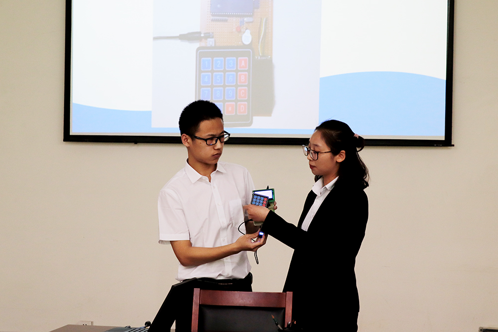 特長生匯報按照課題小組陳述課題主要內容、評審督導教師提問點評、學員答辯的程序進行。各位匯報人邏輯清晰,重點明確、亮點突出,充分展示了各課題組的研究成果。評委老師認真負責地為每個課題組的匯報內容進行點評,并就完善課題內容提出了詳細的指導意見和改進建議。經過各位評委評定,趙勇老師指導的《模擬雷電沖擊直流高壓發生器的設計與制作》和鄭淑軍老師指導的《智能數顯電烙鐵設計制作》兩個課題作為系優秀特長生課題參加學院特長生課題匯報。