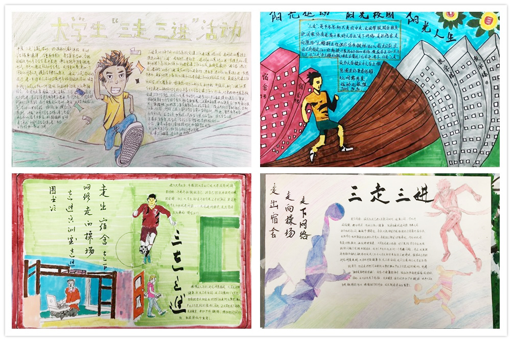 線上線下搭陣地。該系充分發揮線上線下協同“作戰”優勢,真正讓“三走三進”活動理念深入學生心中。線上通過官方微信推出專題微刊闡釋“三走三進”活動的精神與意義,官博發出話題與參與者進行在線互動,為“三走三進”系列活動進行預熱。線下通過舉辦主題班會和手抄報大賽,引導廣大青年學子走下網絡、走出宿舍、走向操場,積極開展戶外活動,鍛煉體能意志,追尋青春夢想。