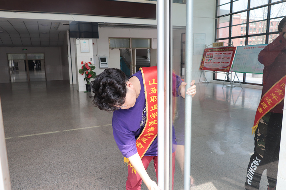 3月27日至3月29日,志愿者們分別在圖書館、10號教學樓、9號宿舍樓內開展了衛生清掃活動。掃地、擦窗、倒垃圾……清掃過程中,同學們分工明確,互相幫助,互相配合,不拍臟,不怕累,體現了志愿者的服務意識。志愿者們紛紛表示,在活動中逐漸體會到雷鋒精神的偉大,領會到在平凡的崗位做一個不平凡的人,“將有限的生命投入到無限的為人民服務之中”的真正價值,希望更多的同學成為文明校園、和諧校園的倡導者、傳播者和實踐者,為校園精神文明建設貢獻力量。