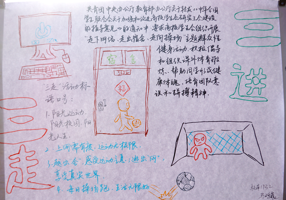 為積極響應學院“走下網絡、走出宿舍、走進操場、走進圖書館、走進實訓室、走進社團”活動的號召,近期,鐵道機車與機電裝備系開展了“三走三進”手抄報評比活動。