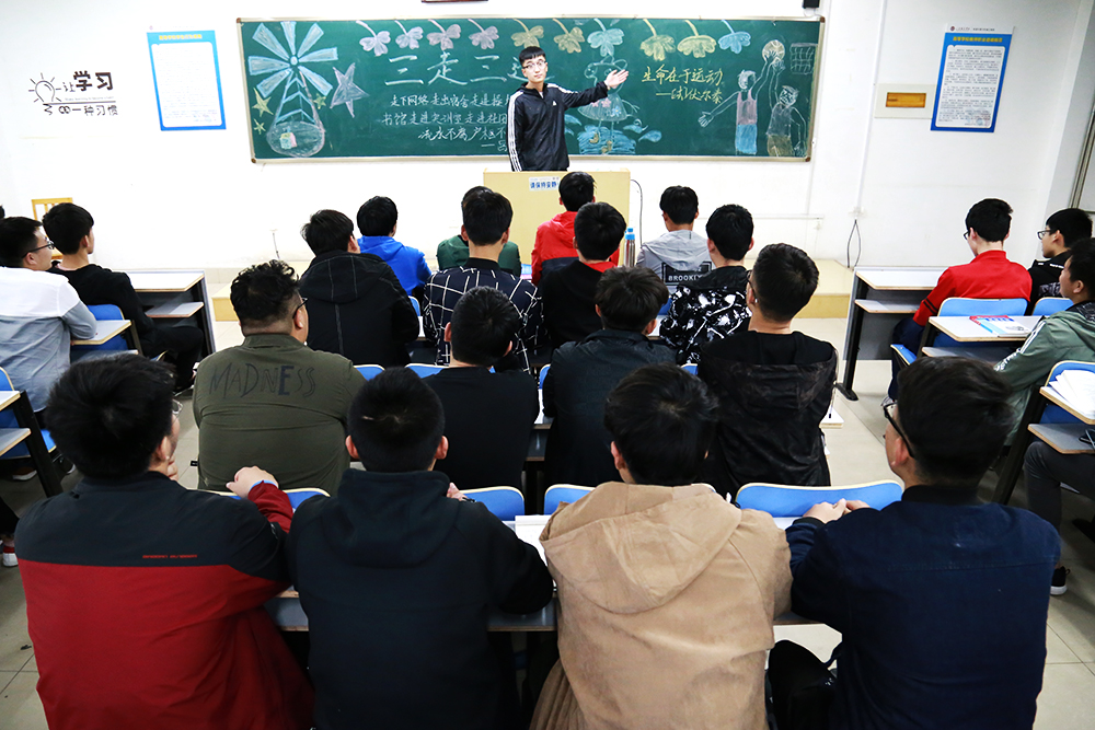 班會上,各班班長向同學們強調了擁有健康的體魄對于同學們的素質發展及學習生活的重要性。班會圍繞“依賴手機帶來的危害”“如何抵制手機依賴”“如何告別網游、走出宿舍”等話題,通過情景再現、集體討論的方式了解大學生們的課外活動情況,并組織同學們討論走進操場、走進圖書館對大學生的學習、生活、意志力等方面的影響,從多個角度分析積極參加體育鍛煉及讀書的有益之處,呼吁和鼓勵大家要走下網絡、走出宿舍、走向圖書館、走進操場。機制1731的班長表示,大家應該轉變觀念,消除惰性,養成良好的生活習慣,使校園生活質量得到切實的提高。