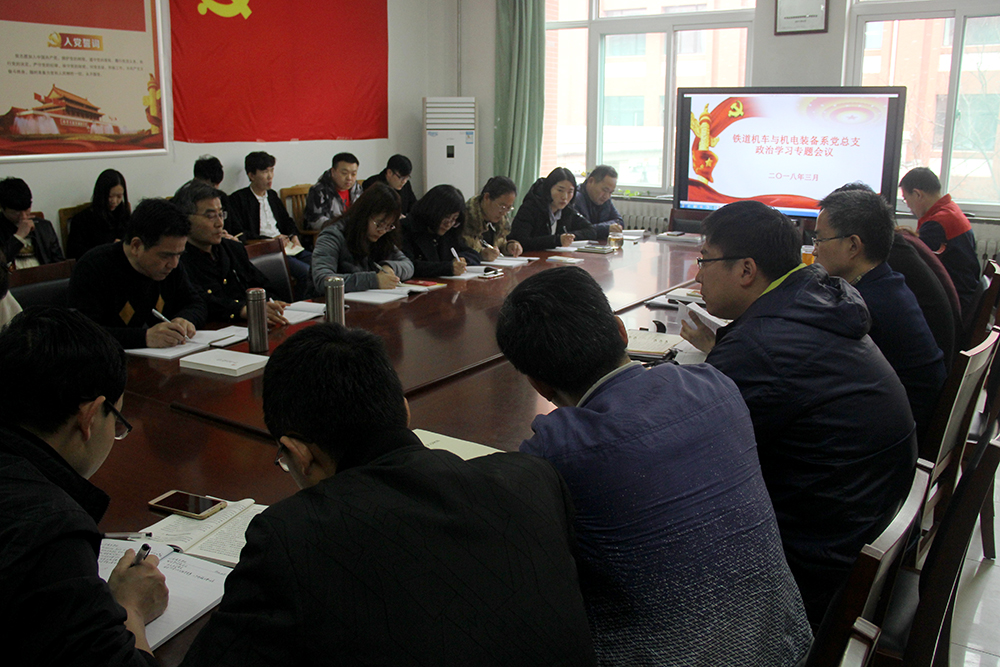 為深入學習貫徹習近平新時代中國特色社會主義思想和黨的十九大精神,3月15日,鐵道機車與機電裝備系黨總支召開政治學習專題會議。