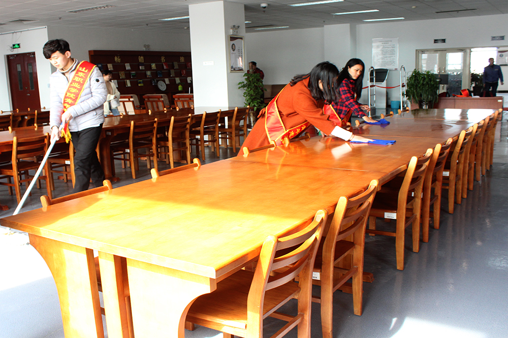 活動伊始,團總支副書記鞠迎強宣讀了學雷鋒志愿活動承諾書,倡導鐵道運輸與財經管理系學子爭做雷鋒精神的倡導者、爭做志愿服務活動的踐行者。青年志愿者協會同學們宣誓盡己所能,不計報酬,幫助他人,服務社會,踐行志愿精神,傳播先進文化,為建設團結互助,平等友愛,共同前進的美好社會貢獻力量。宣誓后,青年志愿者協會同學們開展了圖書館衛生清掃志愿服務活動,為圖書館三樓、四樓圖書閱覽室桌椅板凳、窗戶窗臺以及地面進行清潔。經過同學們的辛勤勞動,閱覽室變得煥然一新。