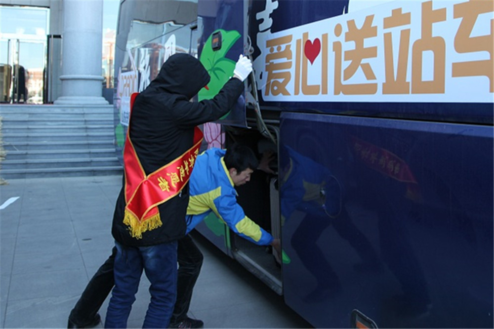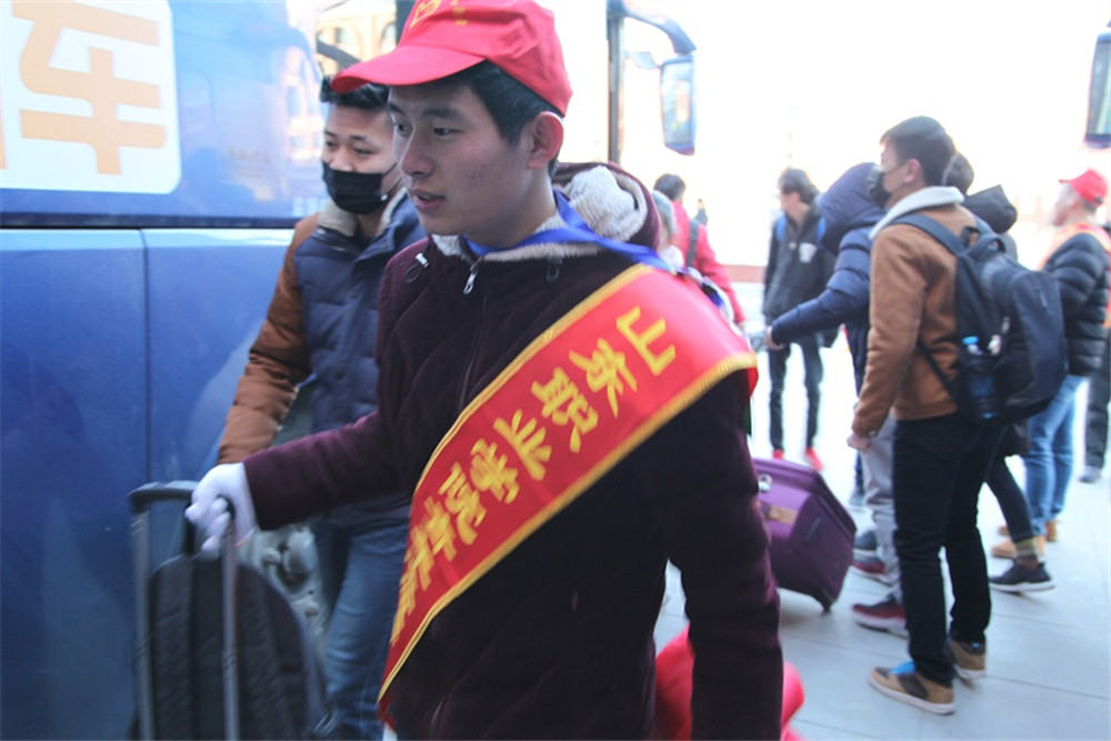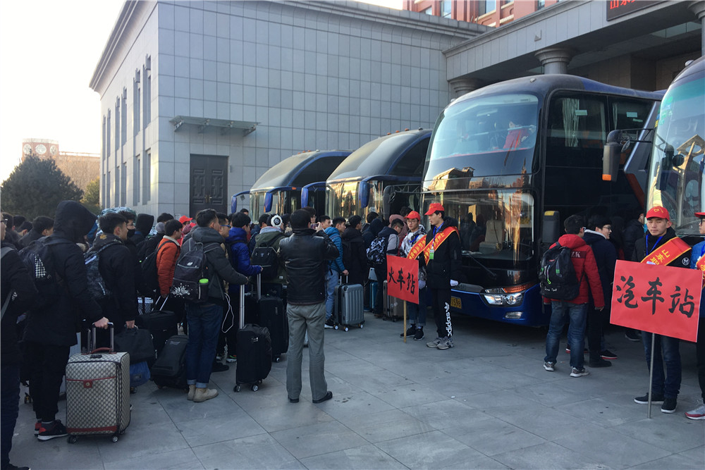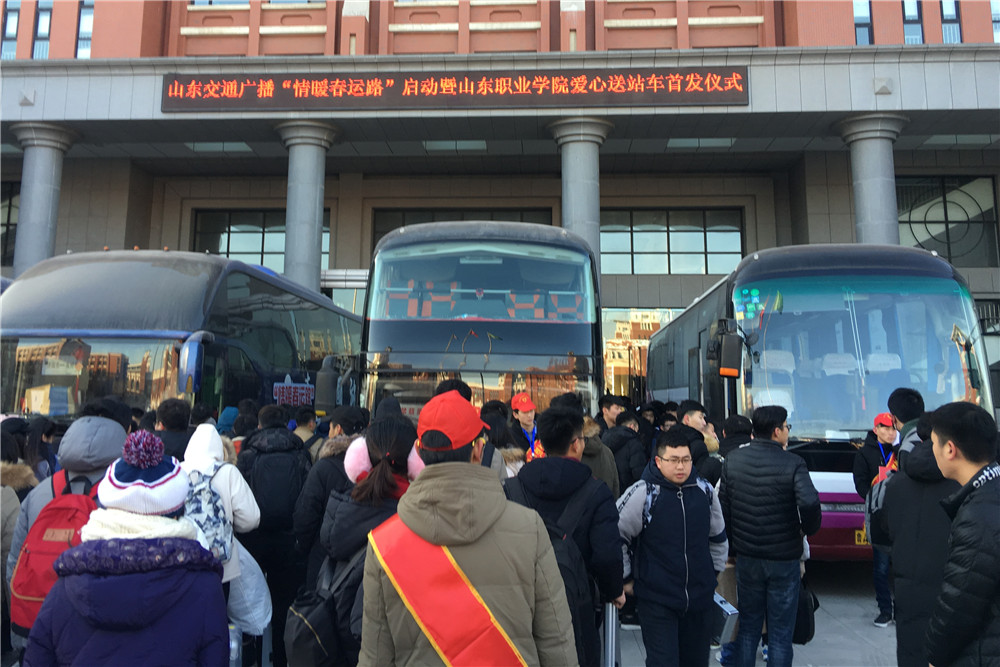 情暖春運,愛滿旅途。1月24日,2018山東交通廣播“情暖春運路”啟動暨愛心送站車首發儀式在我院舉行。來自濟南市交通委等社會各界愛心單位和企業組織的20輛愛心送站車統一集結,為我院寒假返鄉200多名學子提供愛心送站服務。濟南市交通委運管辦客運管理處副處長郭浩、山東交通廣播副總監智勇等嘉賓出席本次活動。學院各系學生工作人員、“紅藍青”志愿者協會春運志愿者以及學院團委、學生工作處工作人員與山東交通廣播的記者及工作人員共同組織參與本次活動,為部分離家較遠的同學寒假順利返鄉提供送站服務并向同學們的家人送上新春的祝福,活動在山東交通廣播音頻客戶端全程進行了同步直播。