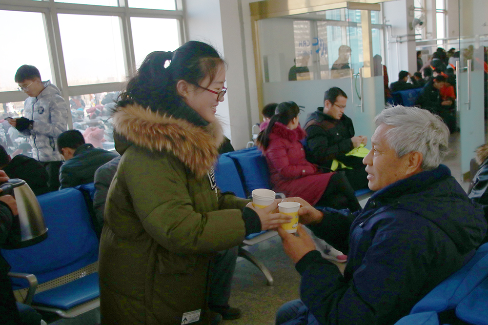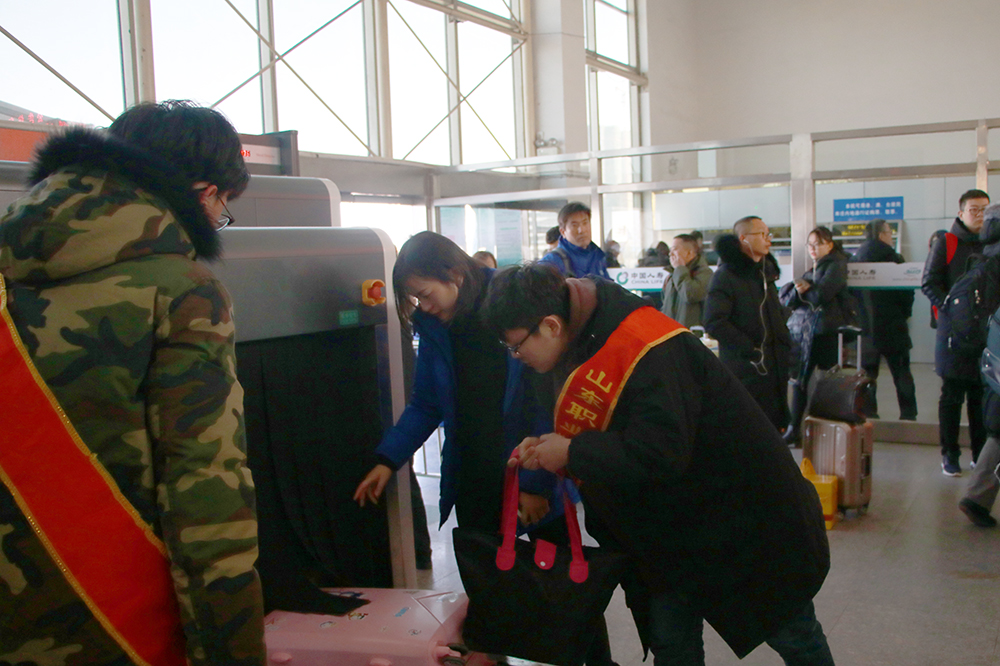 在章丘火車站,志愿者們分三個小隊展開志愿服務。第一隊負責在火車站進出口位置進行道路指引、運輸行李等工作。第二隊負責在候車室內為乘客提供茶水、解疑答惑等工作。第三隊負責火車站站臺衛生,并為上下車的乘客搬運行李等工作。旅客們紛紛表示,志愿者們熱情的服務極大地方便了他們的出行,讓他們感受到溫暖。